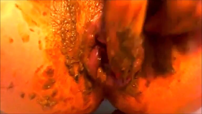 Masturbating and pooping closeup