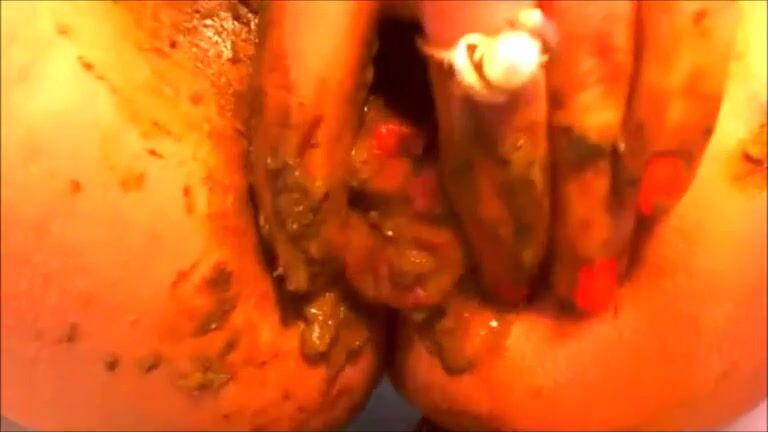 Busty college girl masturbates with messy shit