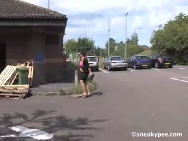 She pulled her panties aside so she can easily pee in a public palce.
