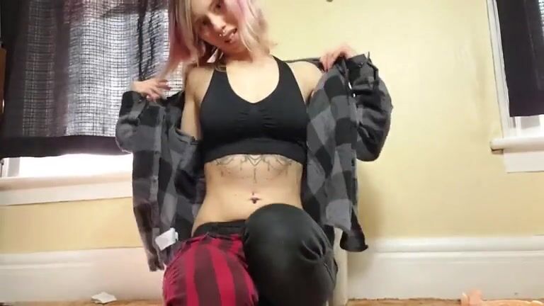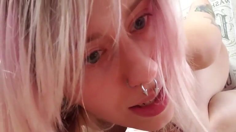 Punk blonde girl masturbates and shits