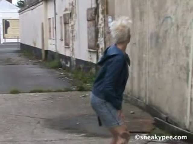 Punk blonde girl peeing in the streets