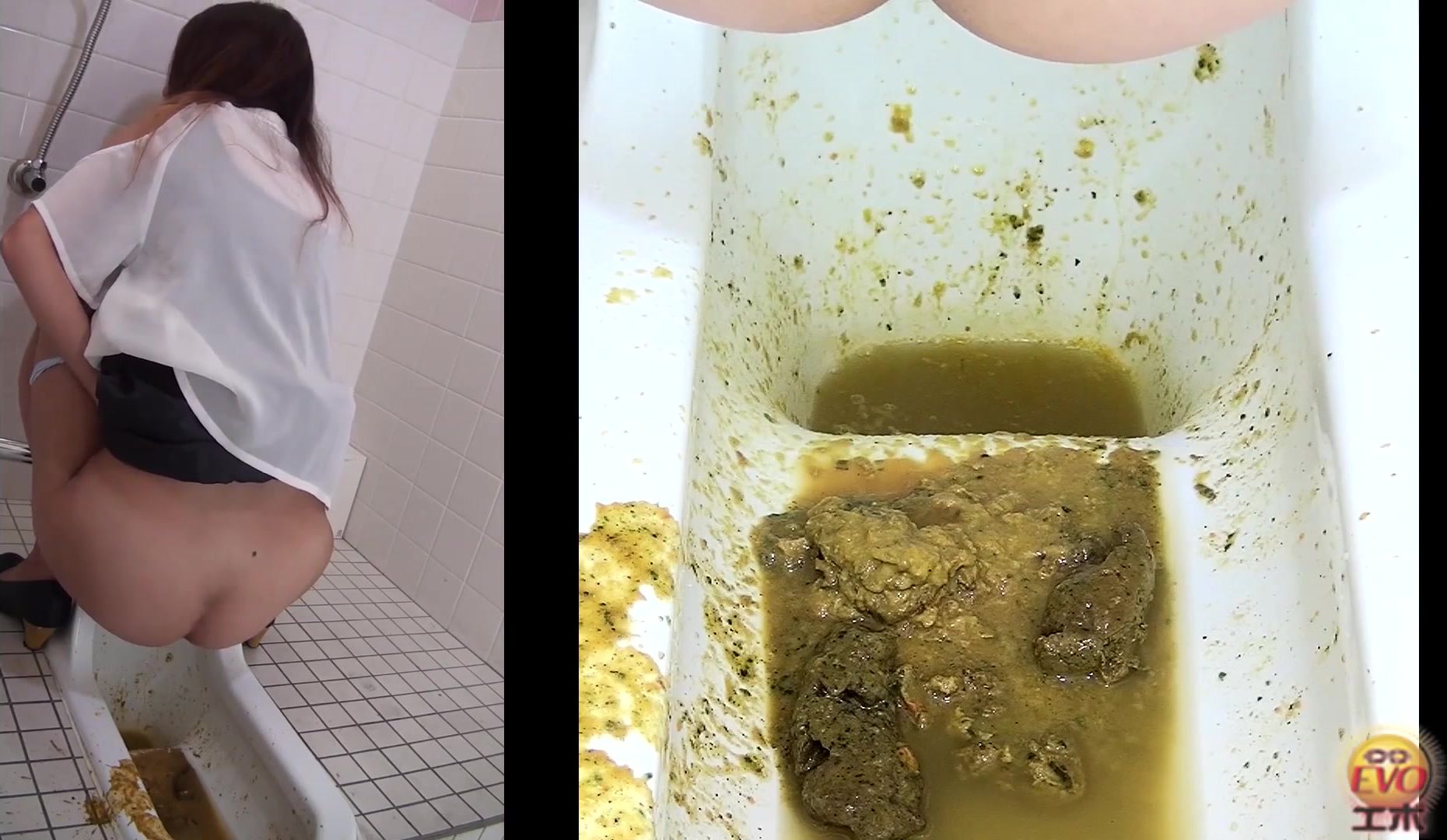 Japanese girl did a real mess in a public bathroom. She ate bad food at lunch and because of that she has diarrhea.