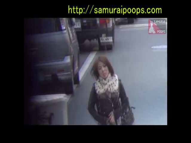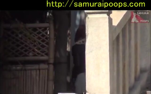 Brown haired Japanese girl is really desperate to poop. She ran to a public bathroom to do that.