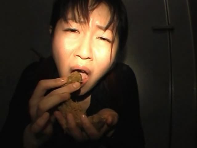 Brunette Japanese babe tried really hard to eat a long turd. She almost puked a couple of times.