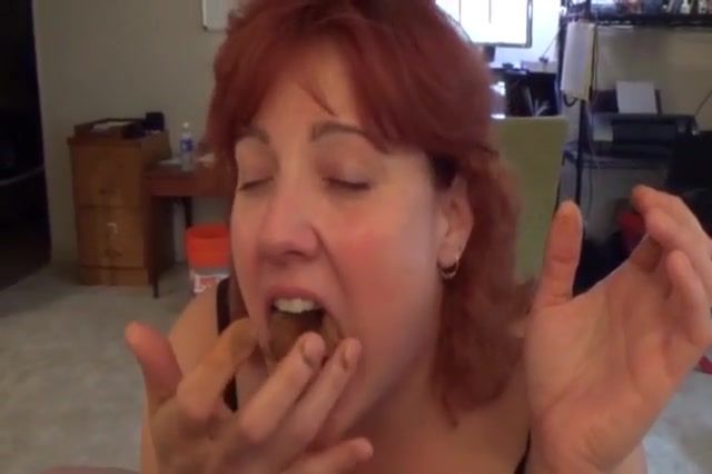 Redhead wife eating poop from husband
