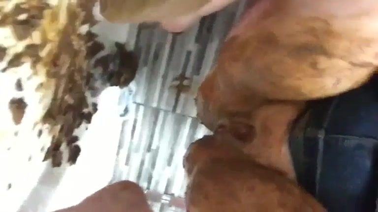 BBW babe covered her pussy and ass with fresh shit. She rides a big dildo hard until reaching climax.