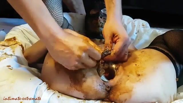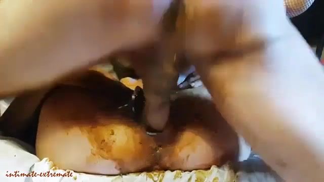 Masked wife that's into scat decides to get fucked hard in missionary after shearing shit on entire body.
