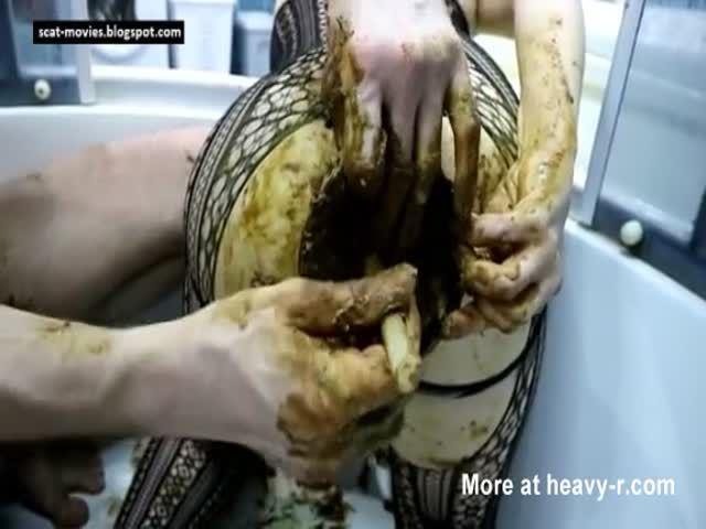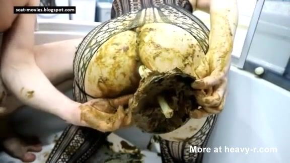 Covered her entire body with brown shit. She lets her boyfriend fuck her tight ass hard.