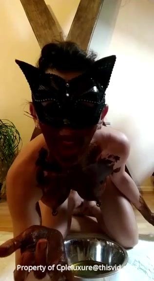 Rubbing poop on entire face before she starts masturbating to orgasm.