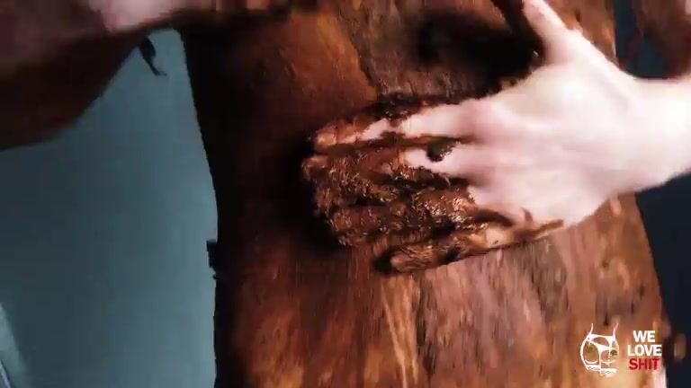 Rubbing her body with smelly sticky shit