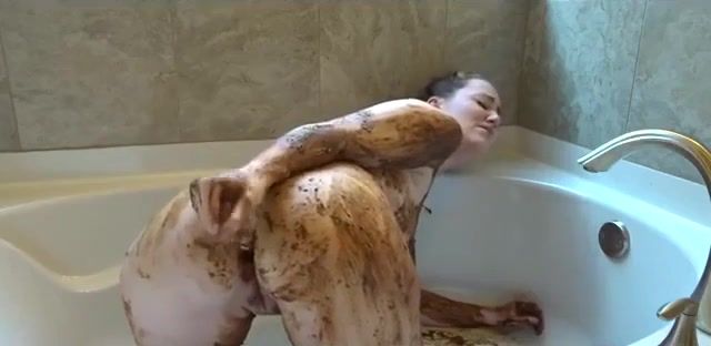 hot babe smears a lot of brown shit on her naked body. She masturbates with poop in bathtub.