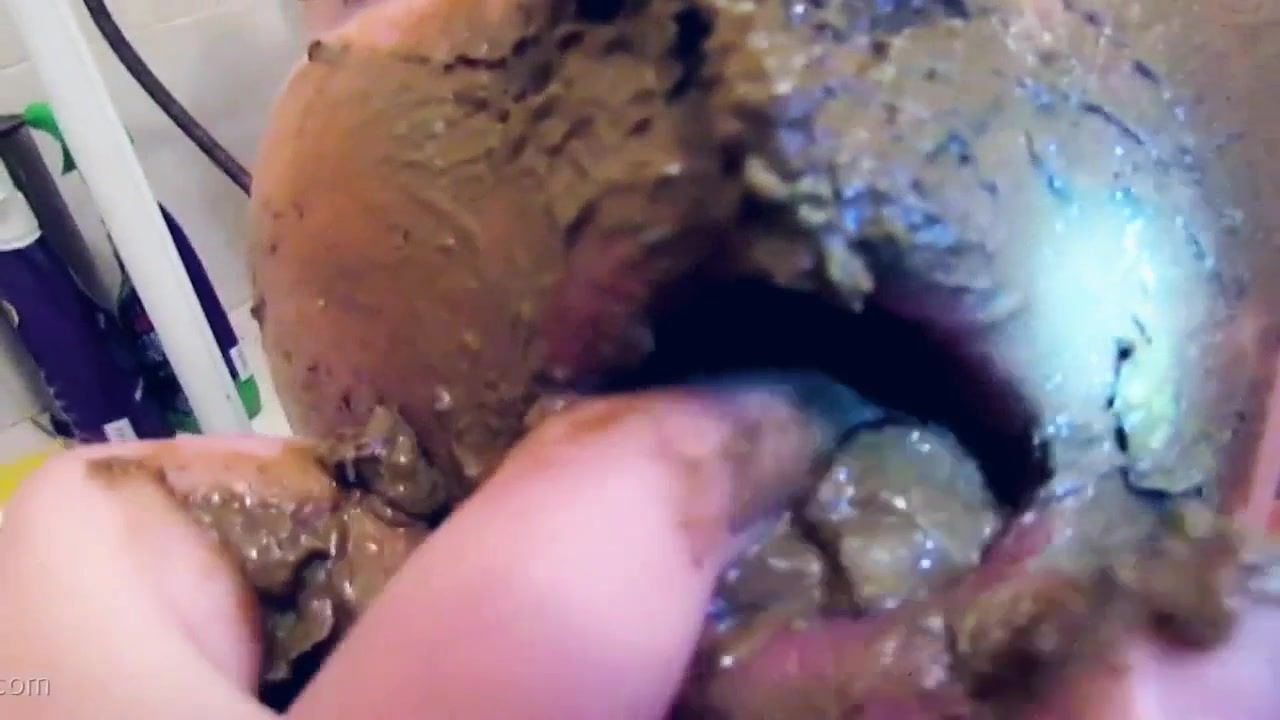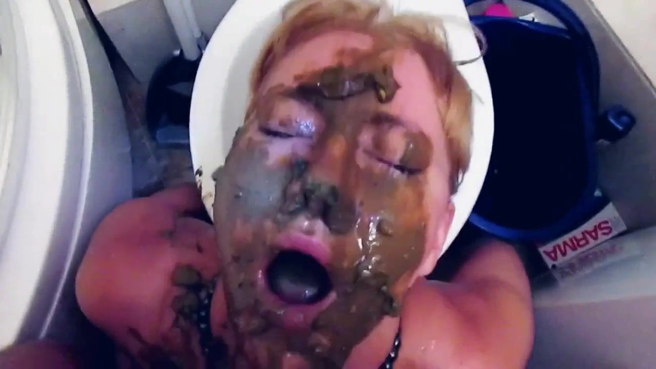 Blonde babe let's her boyfriend to smear fresh shit on her face.