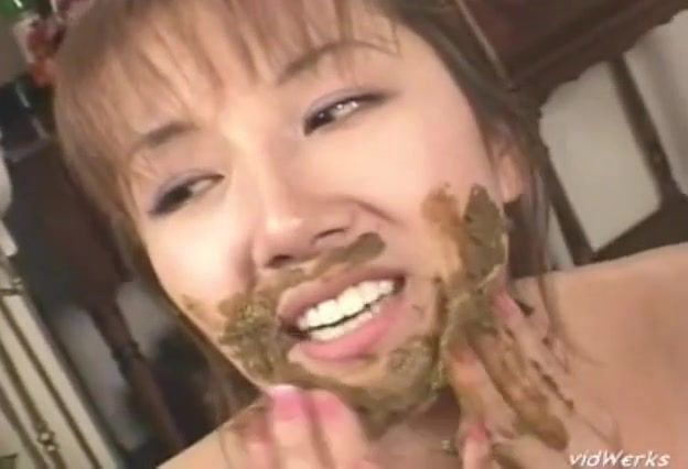 Japanese girl covered her entire body with fresh shit while her boyfriend is licking her pussy.