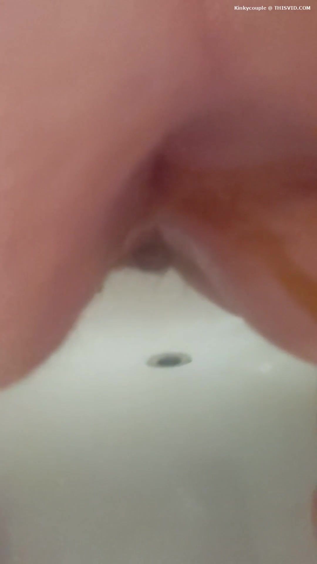 Wife with big ass shits big ones over toilet while her husband is watching.