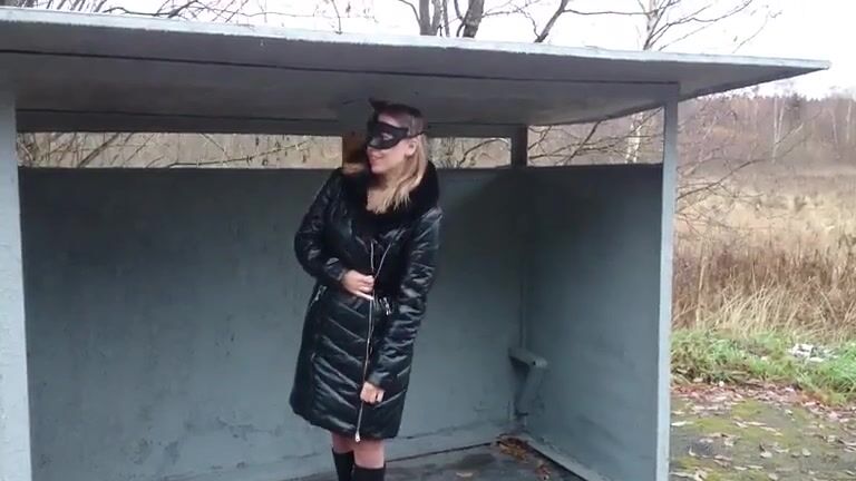 Russian busty poops at the bus stop