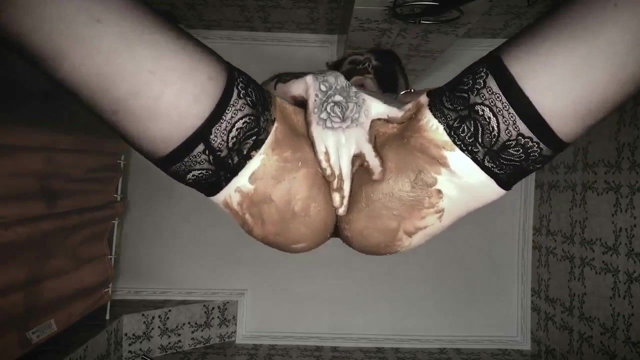 Russian teen teasing with her half naked body. She smears poop on her pussy and ass. She eats her own shit while fingering pussy.