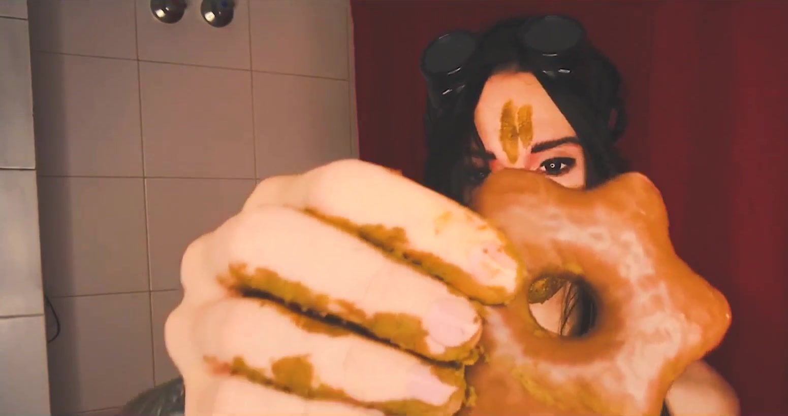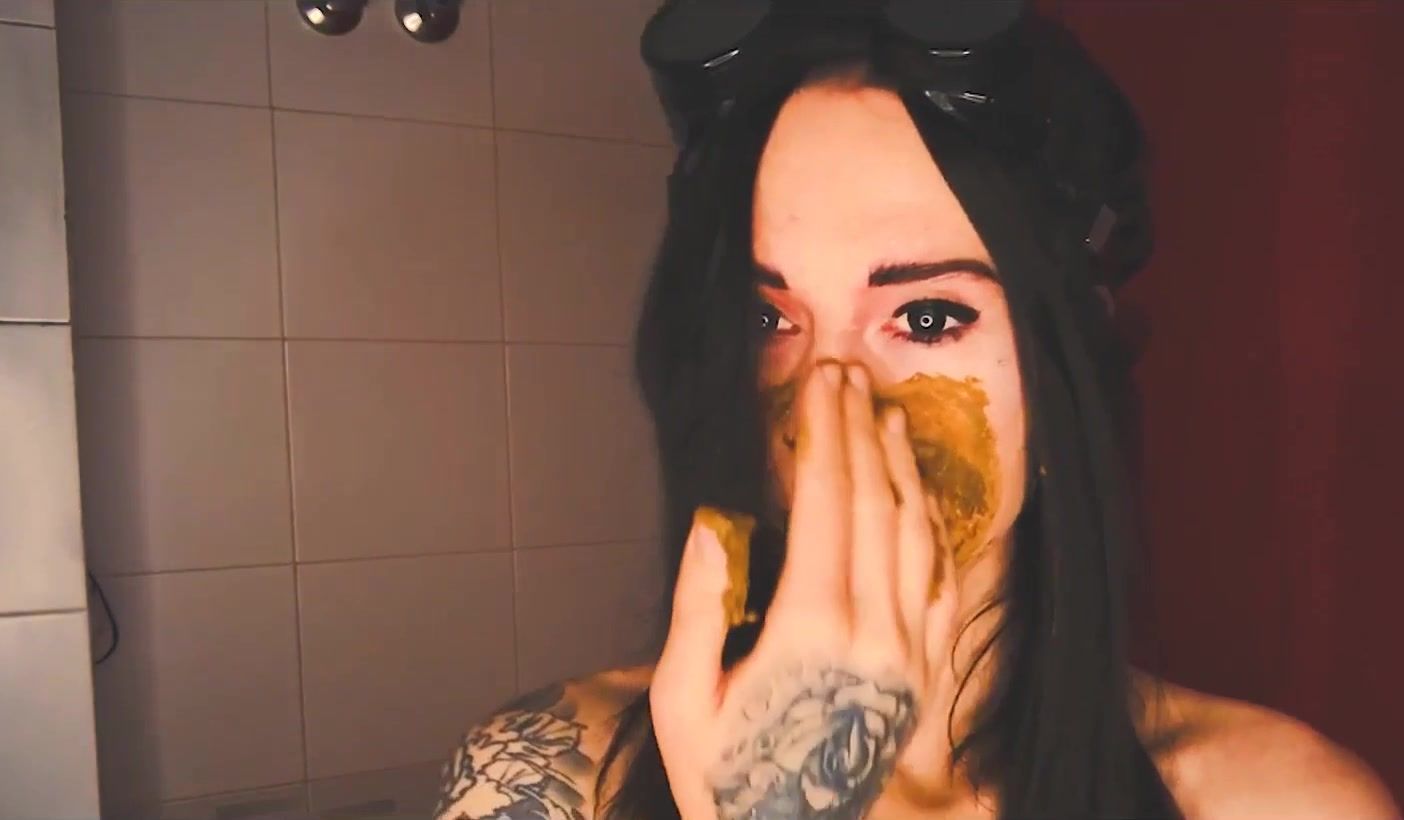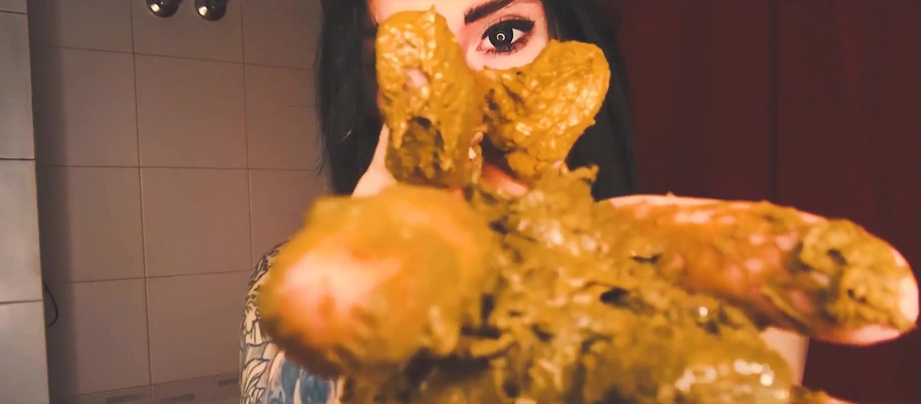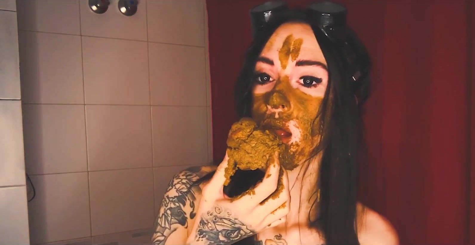 Russian teen smears poop on her entire body. She's fingering her shaved pussy and she's moaning loud.