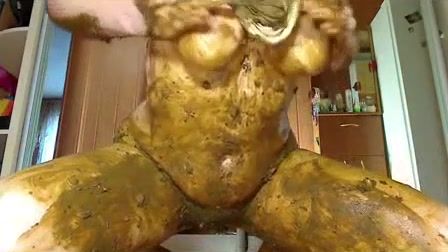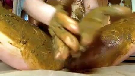Russian wife masturbating with her own poop. She's smearing poop on her pussy until reaching climax.