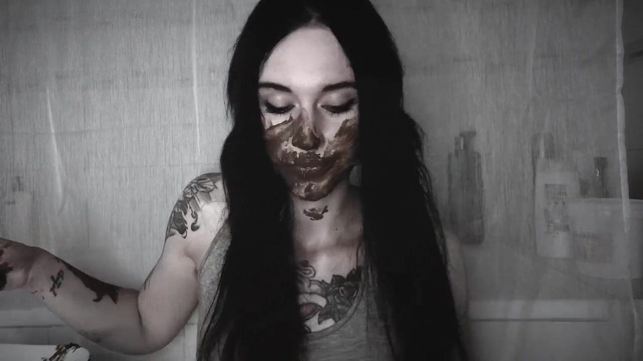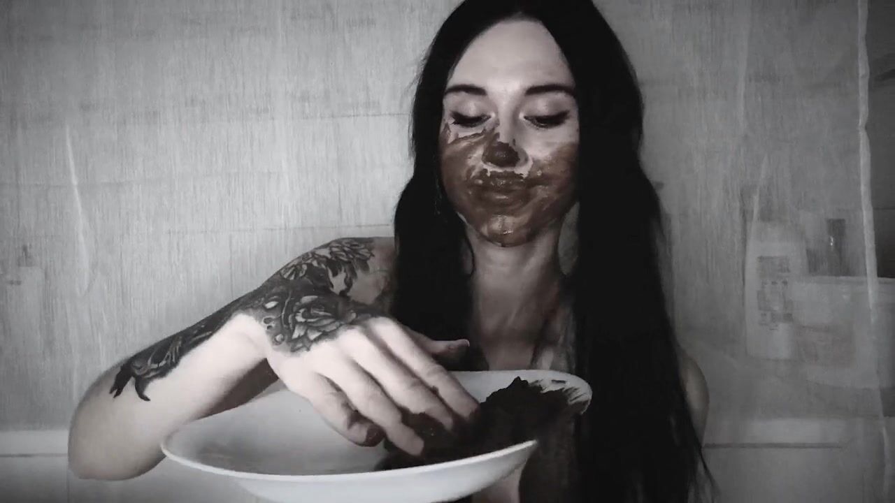 Scat brunette chick eating her own poop