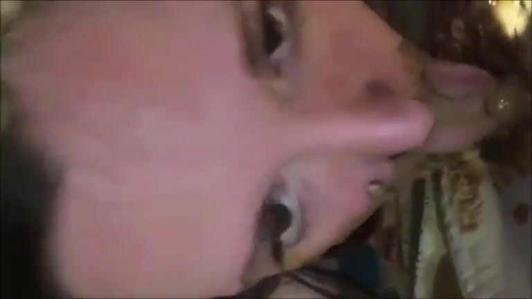 Brunette MILF licking and sucking a scat dildo