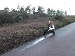 Sexy babe peeing on the highway