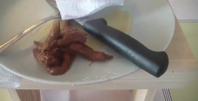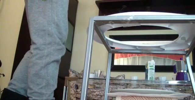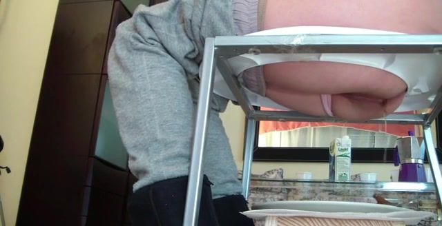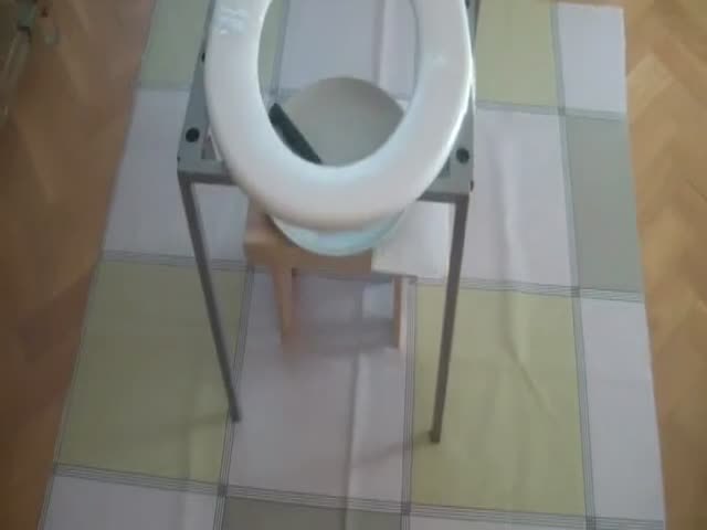 Sexy babe sitting half naked on a white home made toilet while she's pooping a heavy turd on bedroom floor.