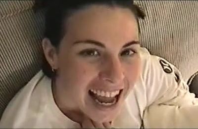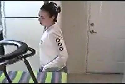 Sexy babe sits half naked on a homemade toilet while she's pooping a big chunk of shit on the floor.