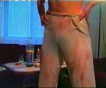 Sexy blonde undressed slowly so she can easily poop on her boyfriends belly. He smears all that fresh poop on his entire body.