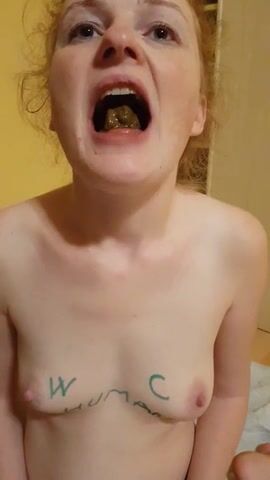 Sexy blonde wife eating fresh shit