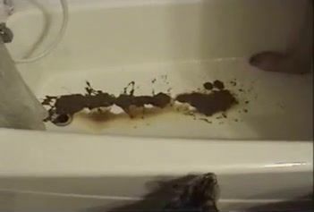 Sexy girl inserts warm water in her tight asshole so she can poop liquid poop in bathtub.