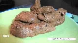 Sexy brunette girl finished pooping on a green plate. She's really proud of her fresh crap.