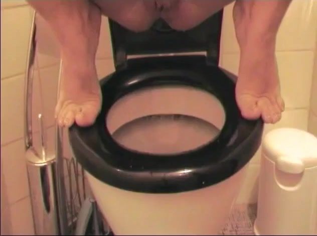 Sexy teen sits half naked on top of a toilet as she dropped a big brown turd over that toilet.