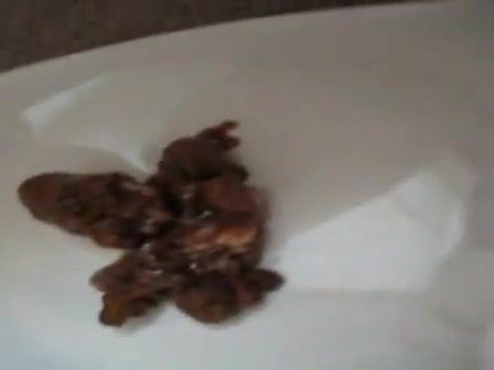 Sexy brunette pooping on top of her candy. She wants to mix her candy and poop and eat it later.