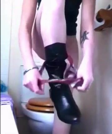 Sexy teen slaps her sexy ass hard before pooping over toilet.