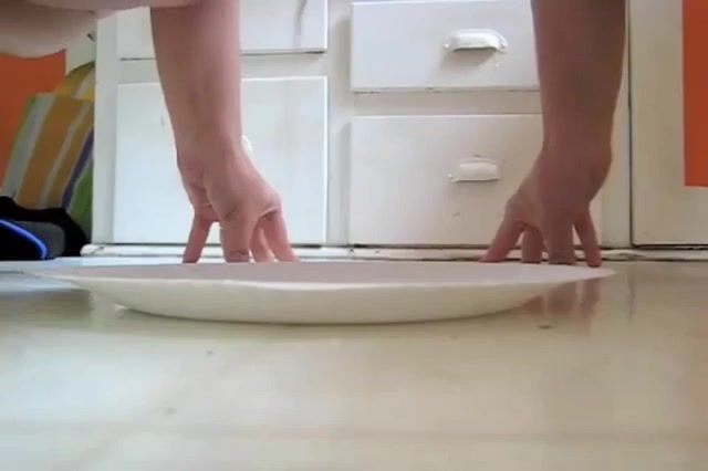 Sexy brown haired wife dropped a huge turd on a white plate. We can't see her face cause she's shy about it.