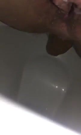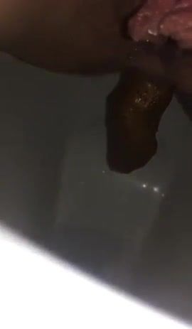 She records her shaved ass in close up while she's shitting a long brown turd in toilet.