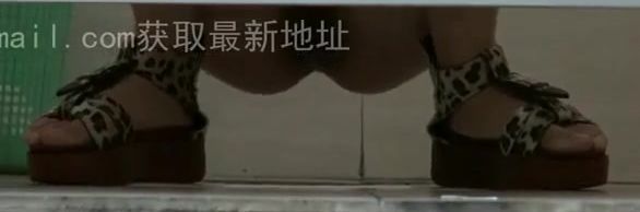 She spreads her legs wide opened and she's pooping and peeing in a public bathroom.