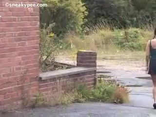British brunette can finally pee after holding it in for many hours.