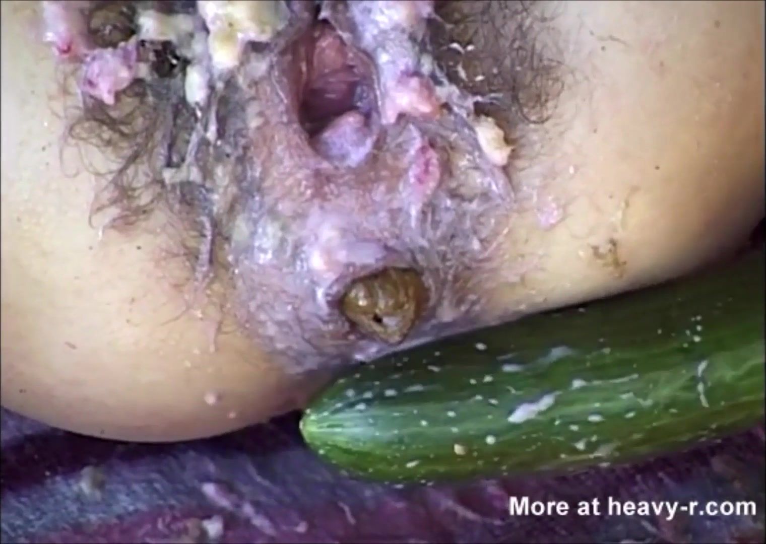She puked on her hairy pussy