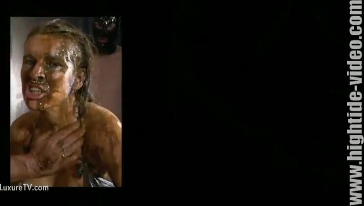 Shit covered hot babe enjoying group fuck