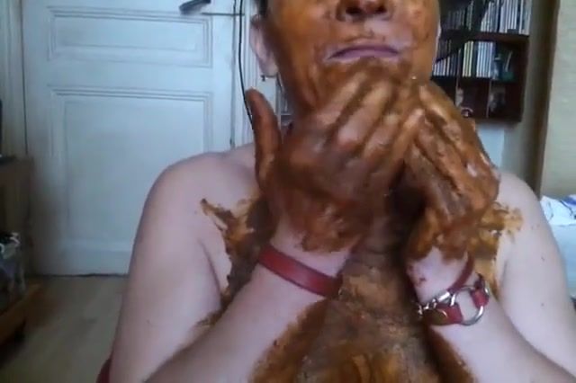 Dark haired mature woman smears poop on her entire body. She did that because she wanted to masturbate in unique way.