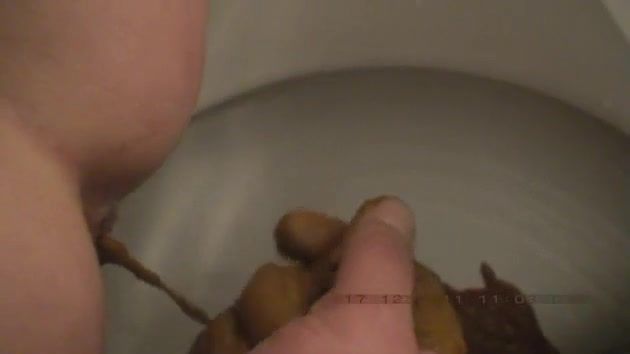 A lovely sexy wife takes a shit on her husband hands. He smears that shit on his dick and on his entire hands.