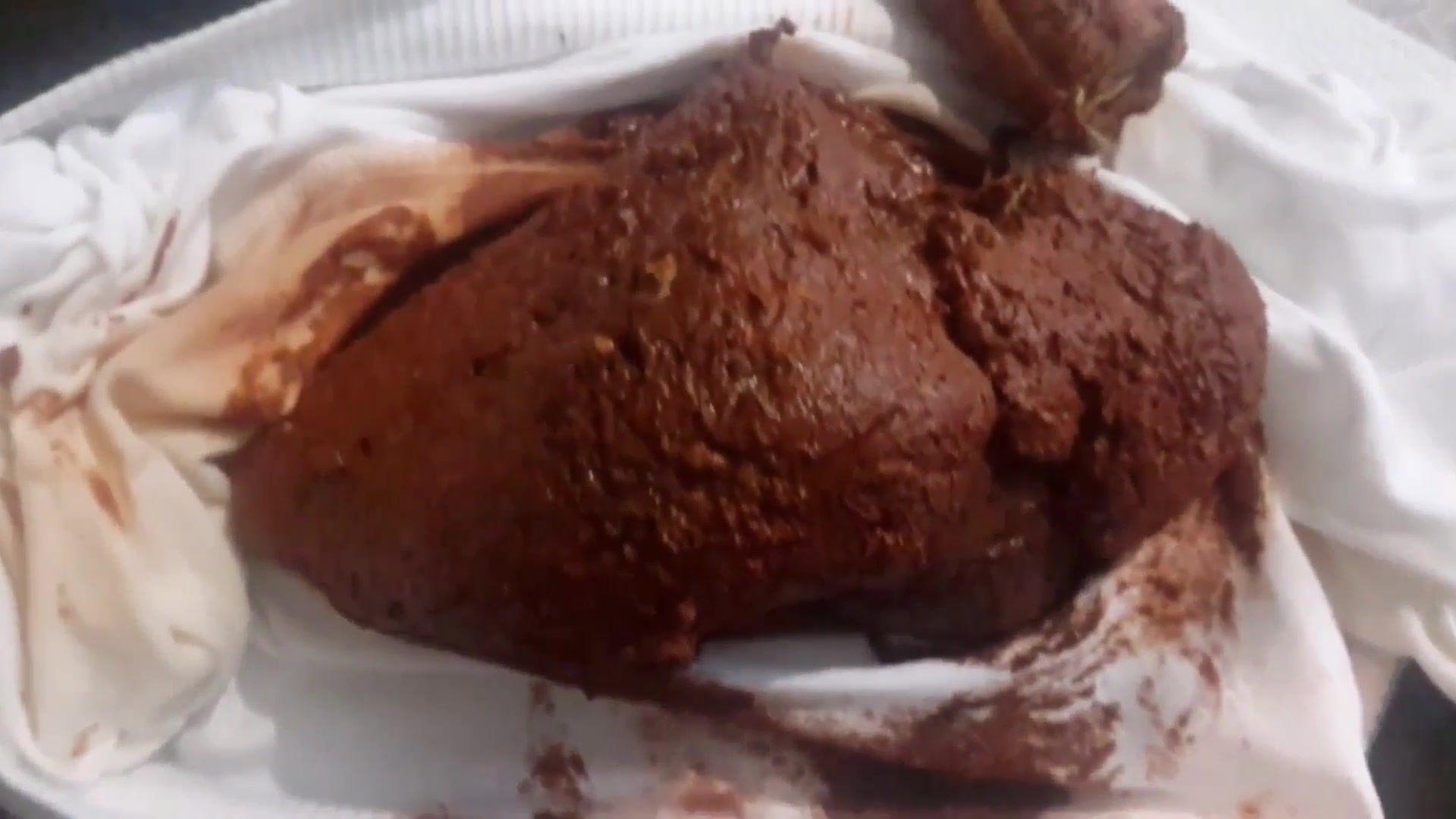 Hot babe dropped a big pile of shit in white pants. She smears poop on entire ass and pussy.