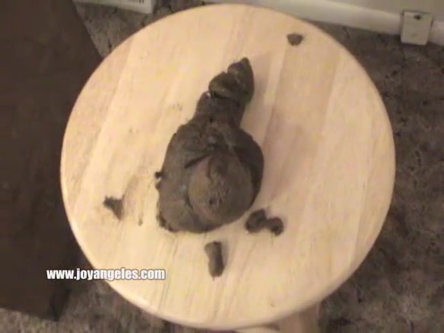 Brunette teen spreads her butt cheeks wide opened so she can easily poop on wooden chair.