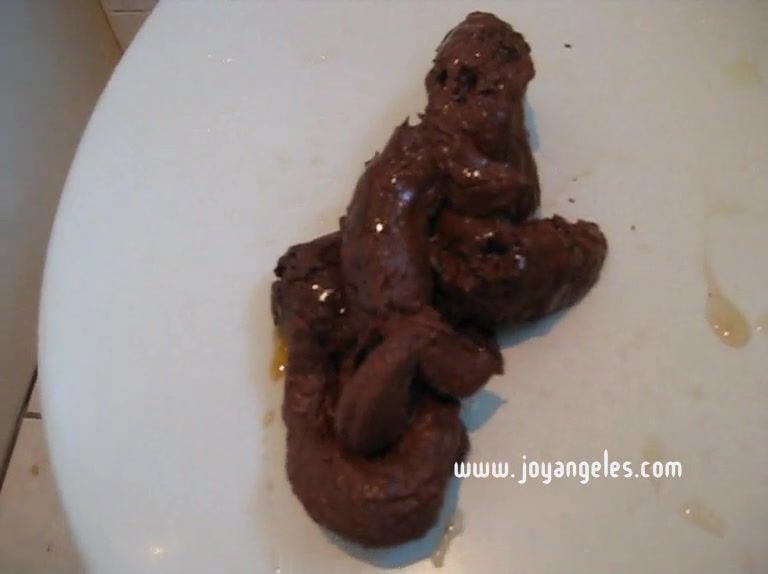 Chubby babe is peeing and she's pooping a lot on toilet seat.
