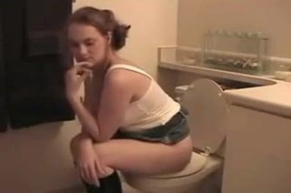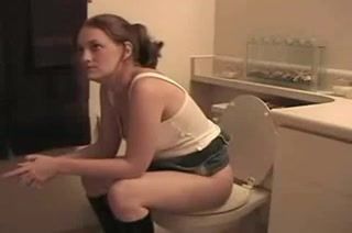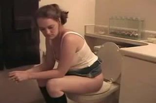 Sweet girl decides to poop in toilet while talking dirty to the camera.