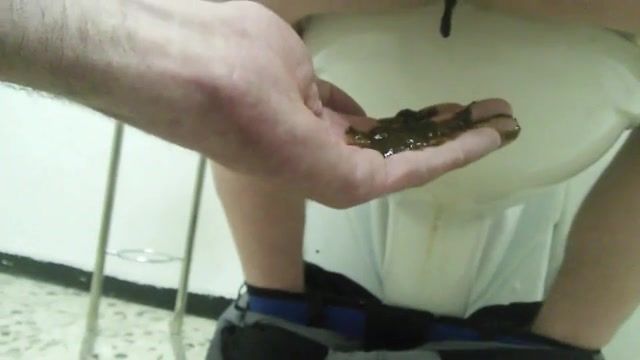 Hot girl is pooping on her boyfriend hands so he can smear that poop on his cock later on.