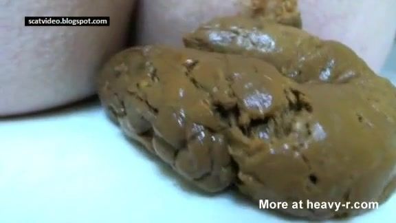 Blonde babe records her big ass in close up and she's pooping a lot on bathroom floor.