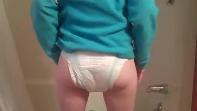 Skinny girl pooping in white diapers