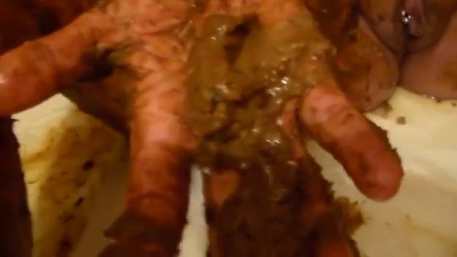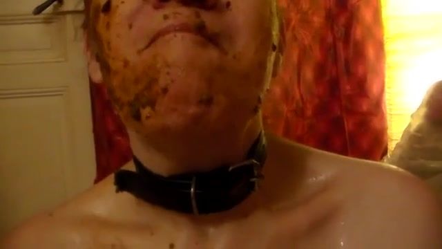Slutty girl forced to eat a big pile of shit without gagging. Her dominant boyfriend is watching and jerking off.